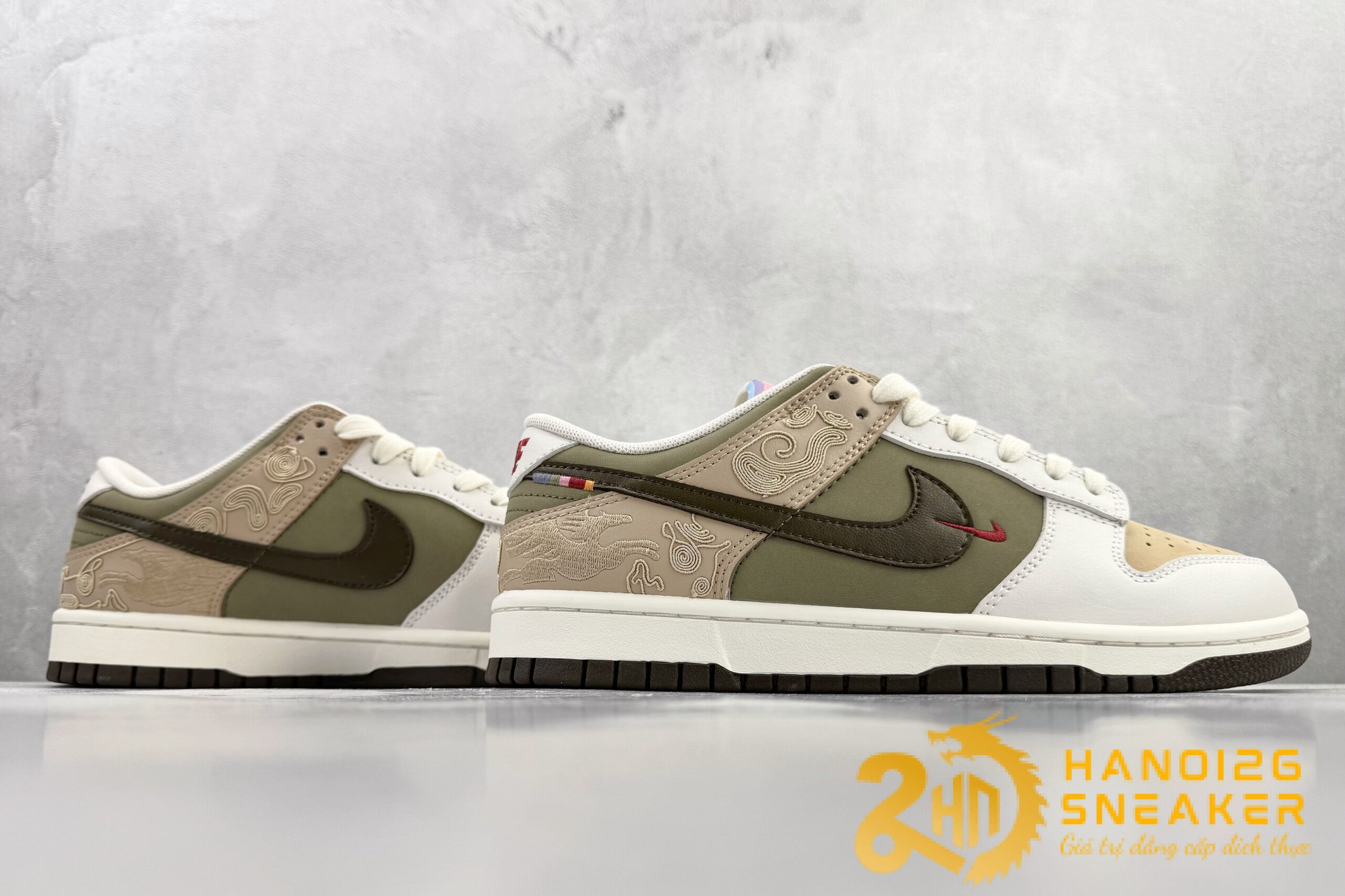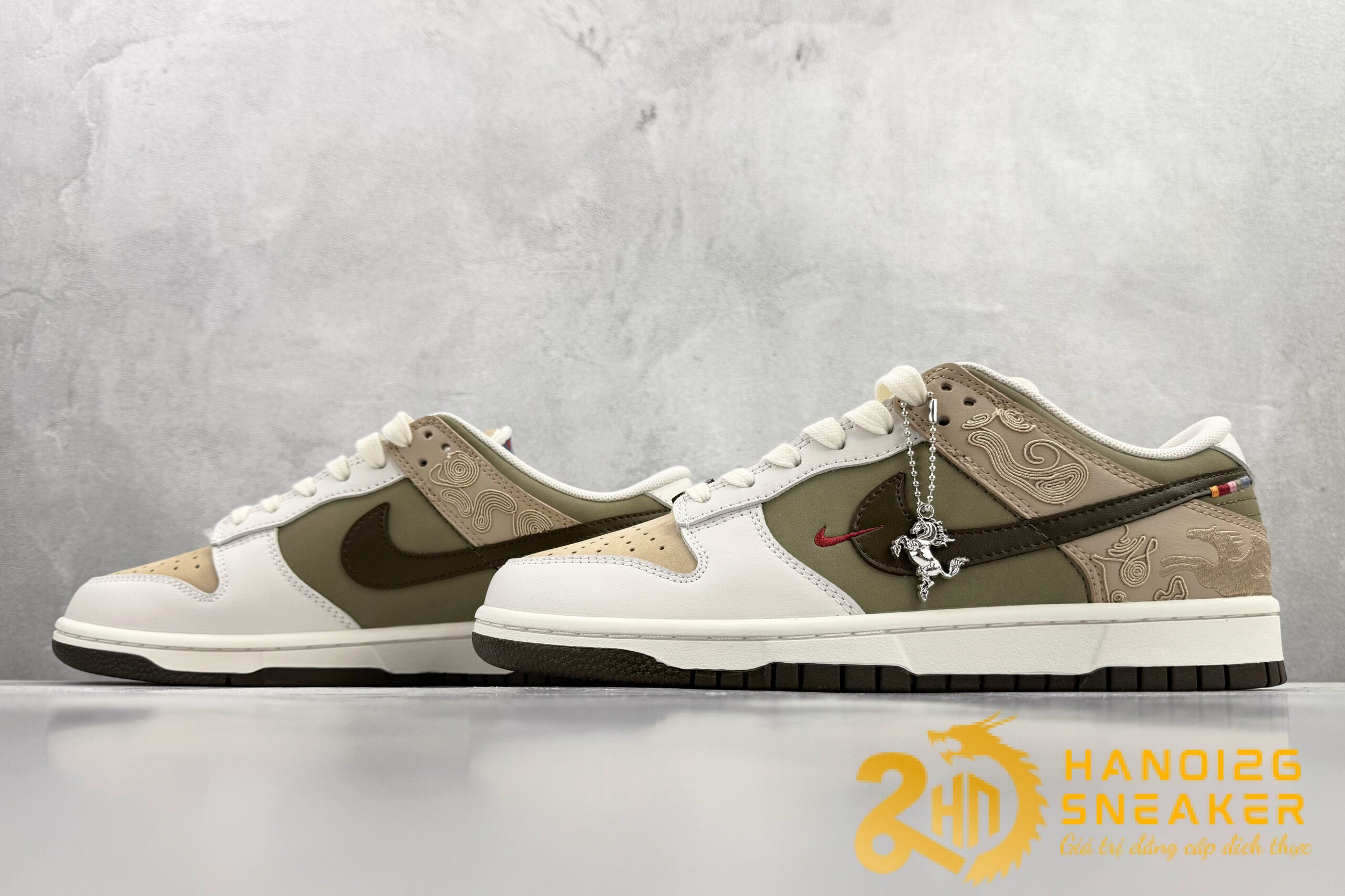 Trong khi Giày Nike Dunk Low Khaki White Like Auth có giá $1.150 – $2,000 Dolar tùy từng mẫu, thì Giày Nike Dunk Low Year Horse Khaki Rep11, Like Auth chỉ có giá chưa tới 1 nửa với chất lượng thì tương tương, quả là một điều đáng cân nhắc cho ai muốn sở hữu đôi giày này một cách tiết kiệm chi phí nhất !